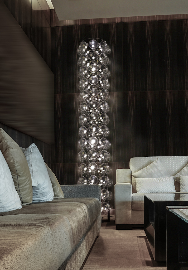 Wisząca konstelacja High Tower może być rozbudowana nawet do wysokości kliku pięter! Stojąca wersja również może nieco urosnąć (w wersji na zamówienie). Możliwość zmiany wielkości i barwy światła sprawia, że lampa High Tower to nieszablonowe, a zarazem praktyczne rozwiązanie oświetleniowe! Z powodzeniem można je też łączyć z innymi modelami z kolekcji Bubbles, np. plafonem Half-Megastar o średnicy 150 cm.